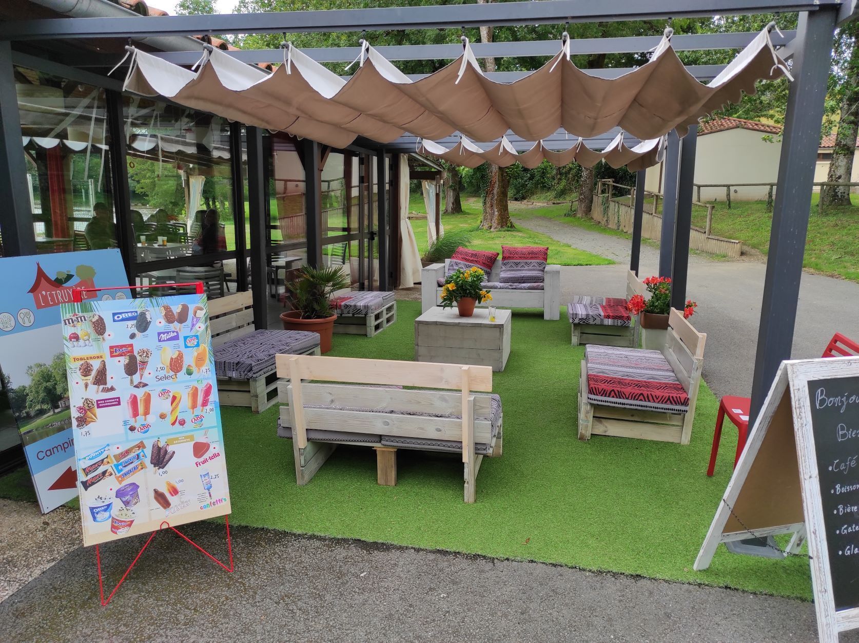 Ons restaurant ligt pal naast het zwembad. En direct aan het meer. Op het terras heeft u een heerlijk uitzicht.